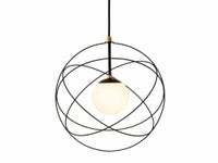 惑星の軌道を思わせるワイヤーフレームの中でガラスボールがまるで浮遊しているかのよう。