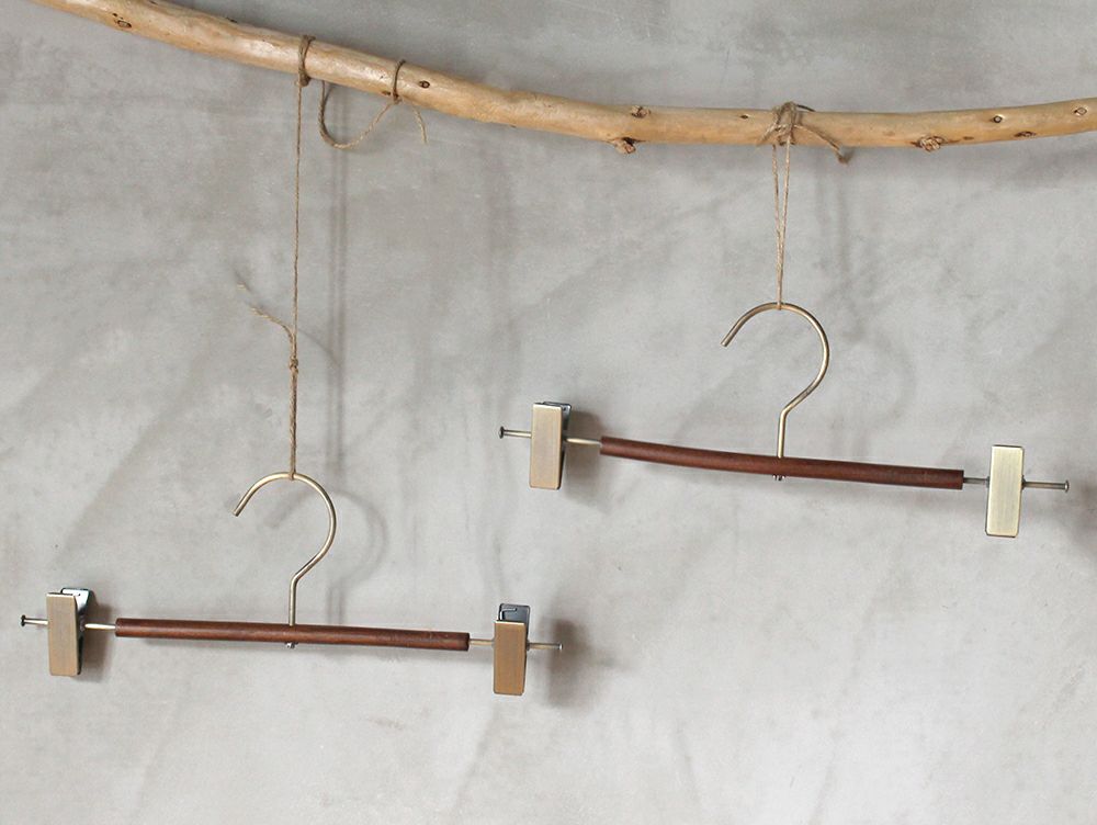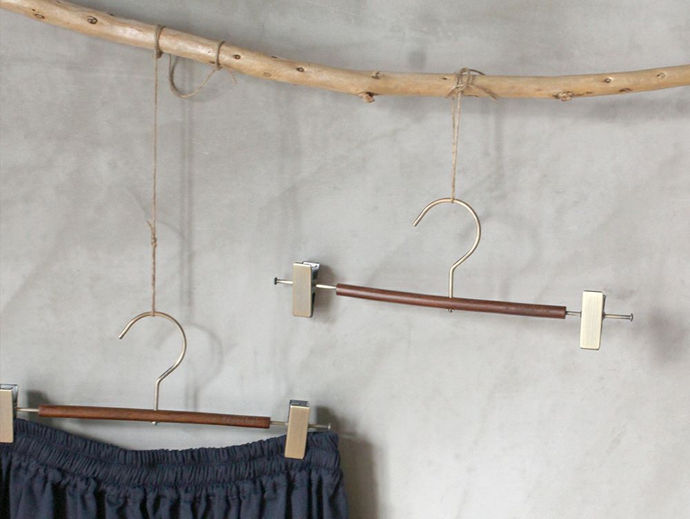 こちらのボトムス用ハンガー「ウッドハンガープレスラウンド」は、同シリーズの「ウッドハンガープレスボード」に比べ、ぐっと華奢さを。