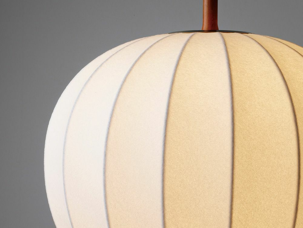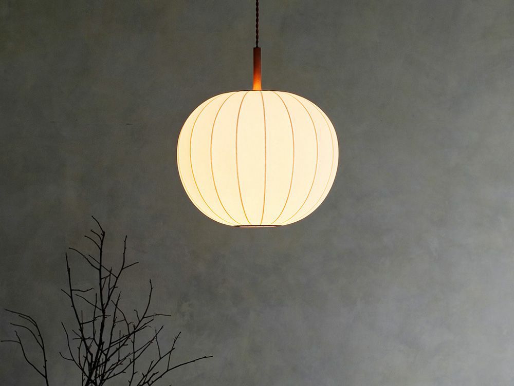 シルクのようにしなやかな素材を用いた、素朴で柔らかな光を灯すペンダントライト。