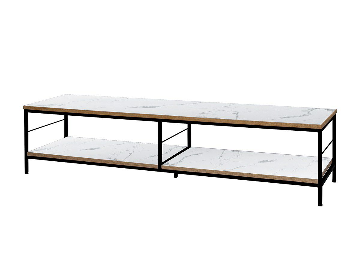 メラミン板×無垢材×スチールの素材の掛け合わせがおしゃれなTVボード。