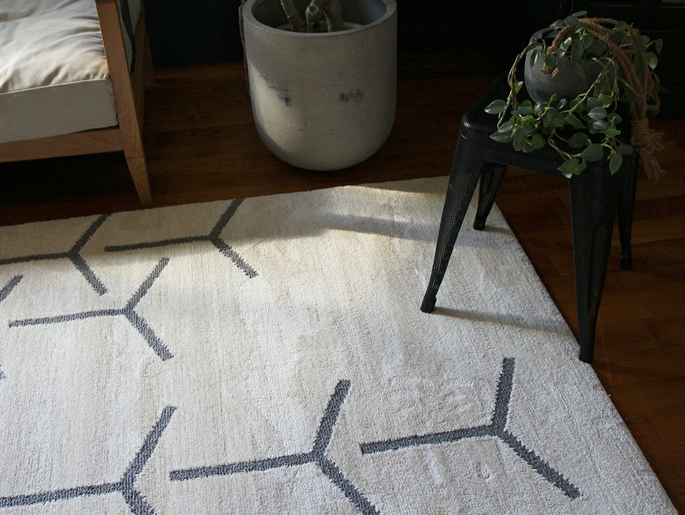 英語のYのような、木の枝のようにも見える北欧テイストの幾何学模様がおしゃれなラグ。