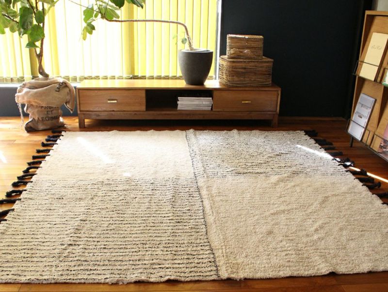 シーズンに合わせた色物の小物にはもちろんモノトーンに合わせたクールなお部屋にもどこか暖かさを感じさせてくれるラグです。