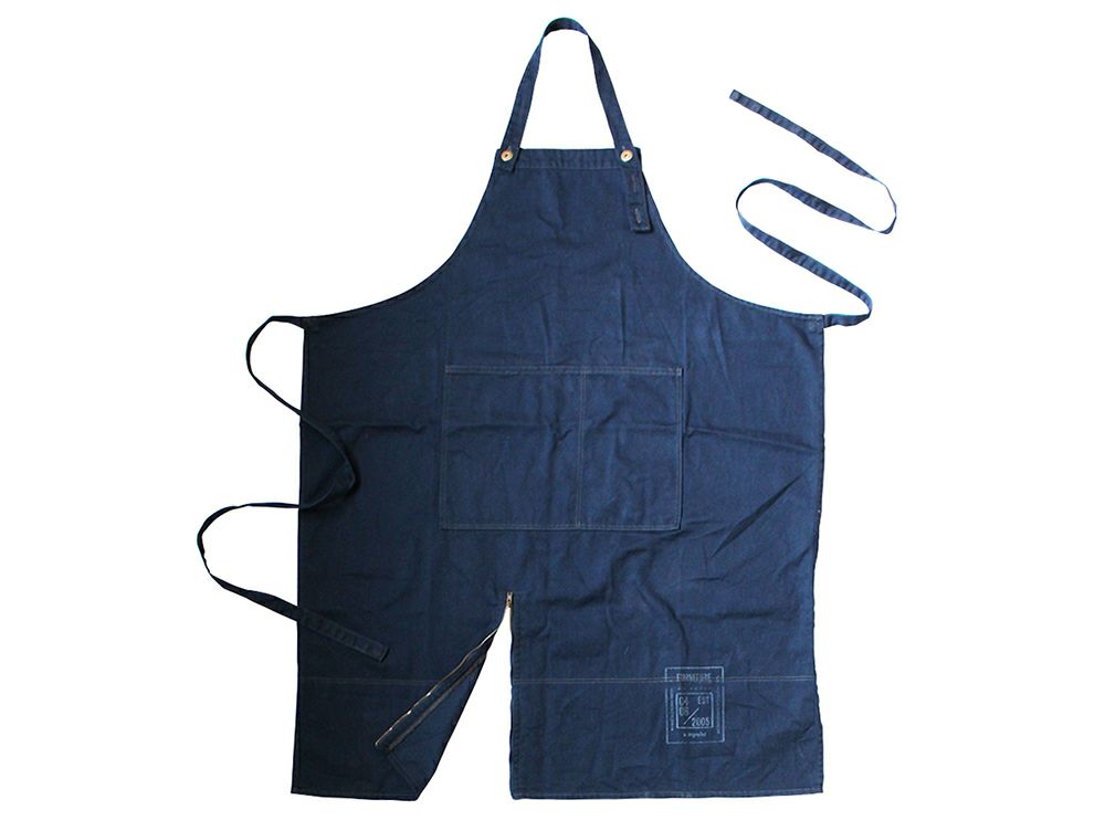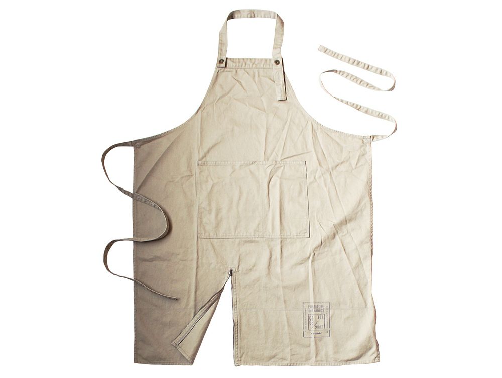 男女問わず使える大人用エプロンには、アンティークゴールドのジッパーを付属することで、スタイリッシュなテイストに。