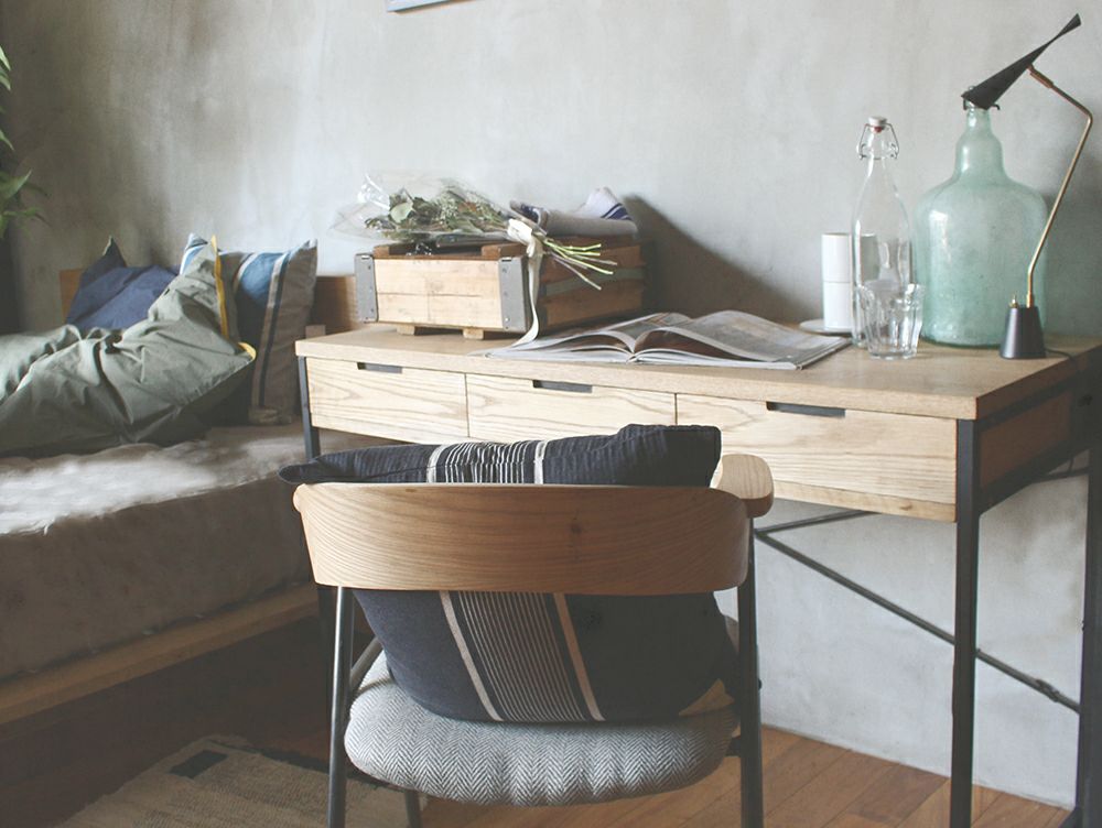 工業的でメンズライクなイメージのインダストリアルテイスト。 単にスチールを使い無骨にするのではなく、 素材を活かした素地に近い質感のスチールワークの曲線や華奢さが女性らしくもあり、 ナチュラルな木材の調和がとれた"他にはない"テイストです。