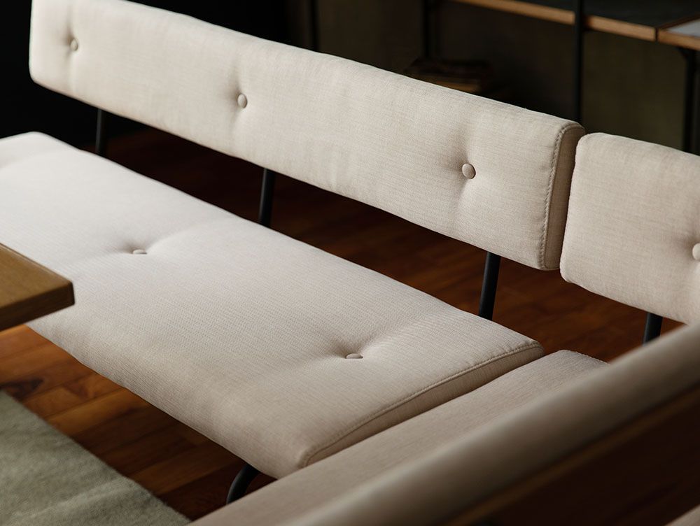 座面・背もたれのクッションは、厚みはスマートに見えてふかふかの座り心地。ウレタンフォームが柔らかさと弾力性の程よいバランスを実現しています。