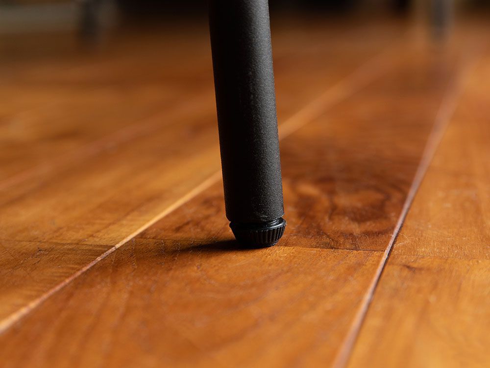 また、足先にはアジャスターが付いているので、ぐらぐらを解消してくれます。数mm程度のガタつきであれば調整が可能です。