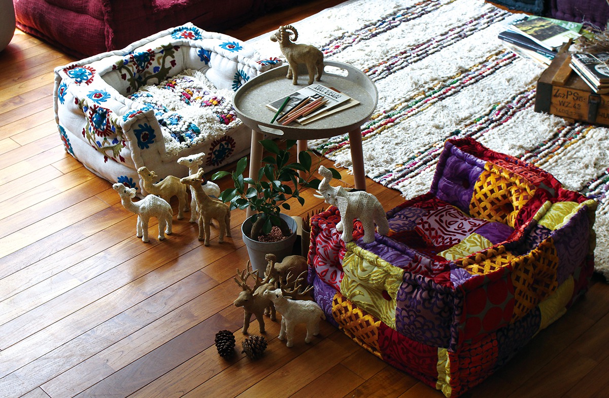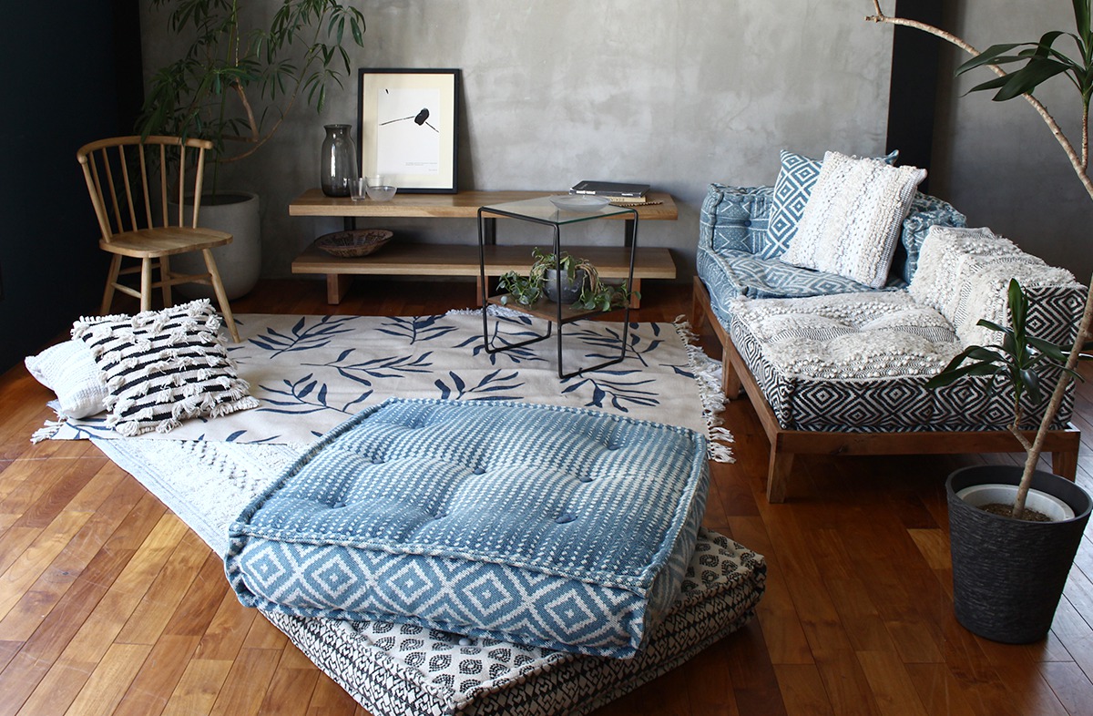 単体で一人掛け用や大きめのお座布団、積み重ねてクッション性のあるデザインソファ、ソファの前にお座布をあわせて脚を伸ばせるカウチソファに、