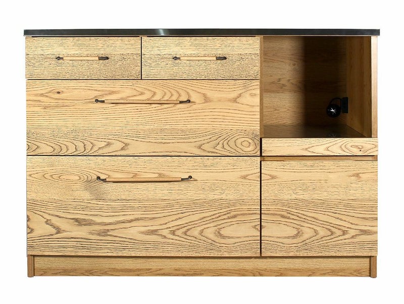 趣味のコーヒー器具が増えて収納が圧迫され、トドメのエスプレッソマシンを買ったところで、いよいよどうしようもなくなりカウンターを増やすことにしました。 オーク材の木目が好きなので検索して特に気に入ったため購入しました。 デザインと収納力には満足していますが、☆5にならない理由として ・天板と引き出しがツラなので巾木があると壁にぴったりつけられない →写真で気づけば良かったのですが、実用上でわりと致命的でした。隙間ガードを配置して解決。 ・少し立て付けが悪く、押し込まないとピッタリ閉まらない →機能に問題があるわけでもないので妥協できる部分です。 ・引き出しの取手が緩む →手だけでも閉められますが、何度か発生したうえに小さくて力をかけづらいのでこれ用に工具を買うことになりました。