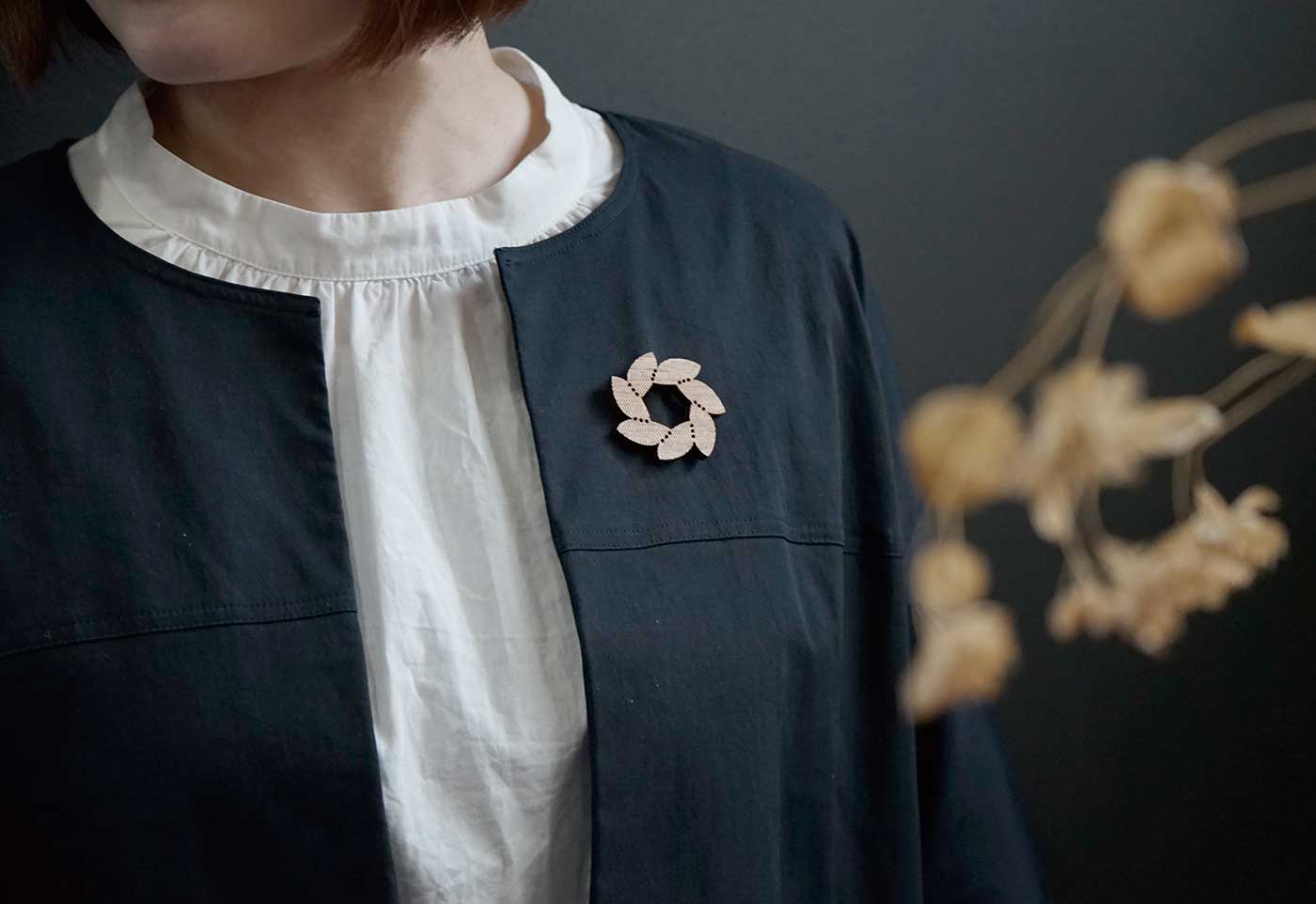 『私のための美術館』をコンセプトにしたウッドブローチシリーズです。 古代ヨーロッパの文化、生活様式を「日常につける美術品」としてブローチに仕上げました。 海外の美術館へ行った気分を、身近に感じていただけたら。 国産のクルミ材をレーザーカットにより繊細な模様を施し、柿渋という天然の塗料を一つ一つ手仕事で丁寧に仕上げております。 そんな繊細で丁寧に仕上げられた美術品のような日本製ブローチで、あなただけの美術館を作り上げて下さい。