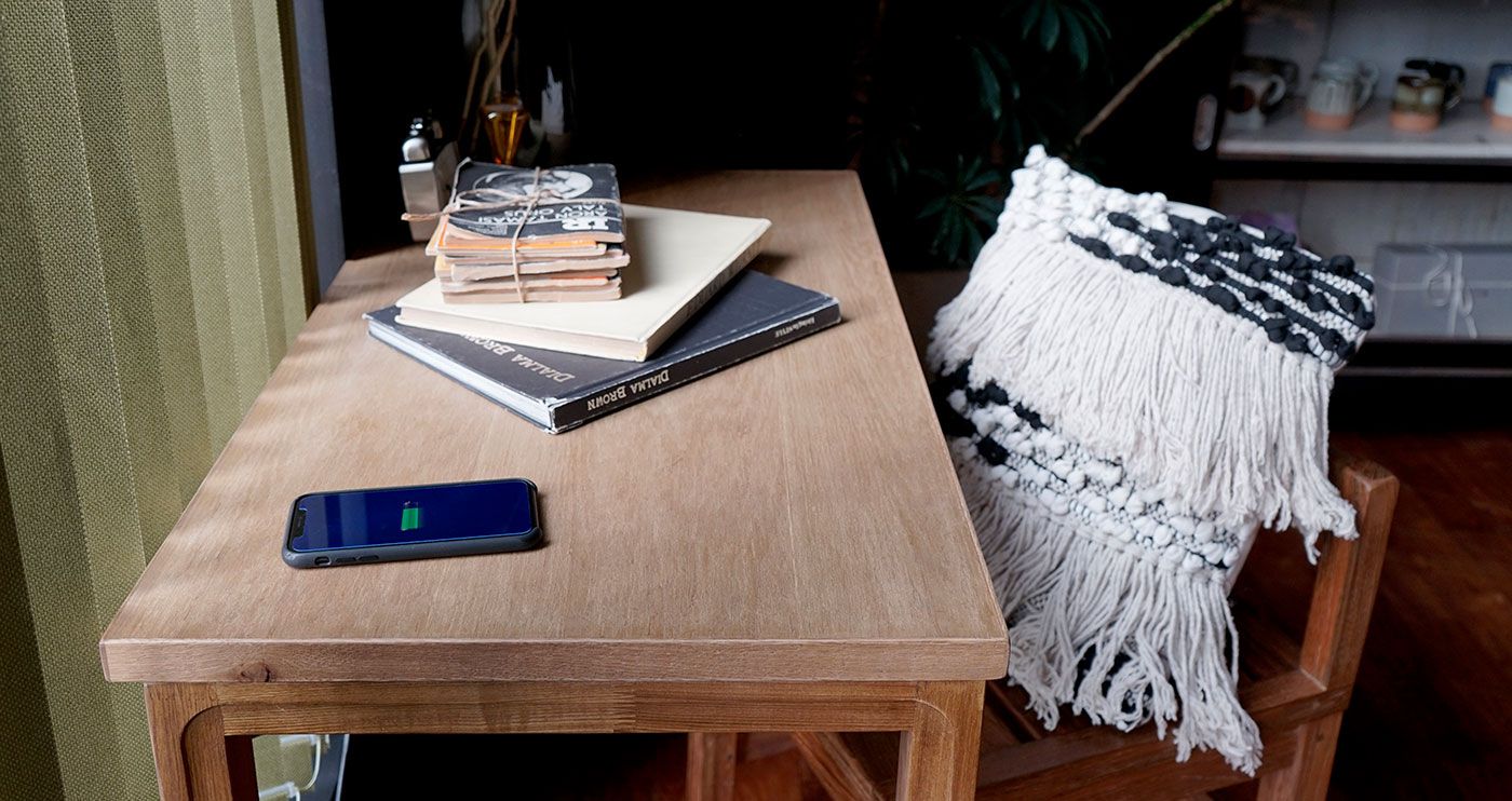 天板の芯材にはバーチ修正無垢材を使用し、3mmの厚いウォルナット材でサンドしていますので重厚で頑丈な作りをしています。 表面材は突板と言えども3mm厚を使用していますので手触りも表情も使用感もほぼ無垢と言って間違いありません。無垢材と変わりないメンテナンスが効くのも嬉しいポイントです。