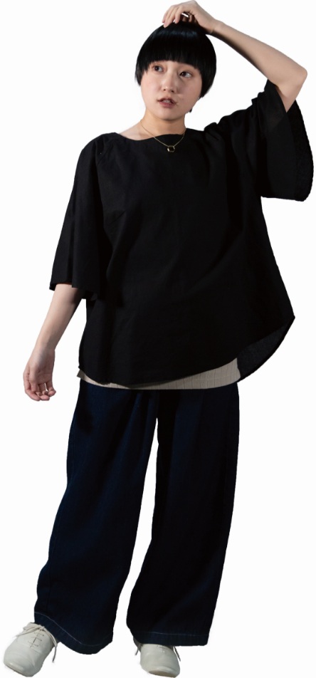flare sleeve blouse ¥9,240(税込) clean my camisole ¥3,190(税込) irregular tuck pants ¥12,980(税込)code 02