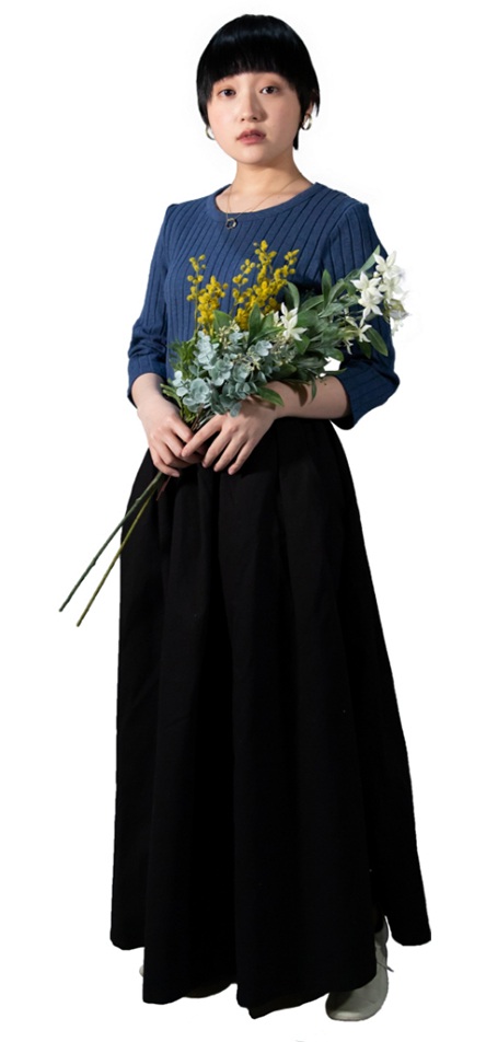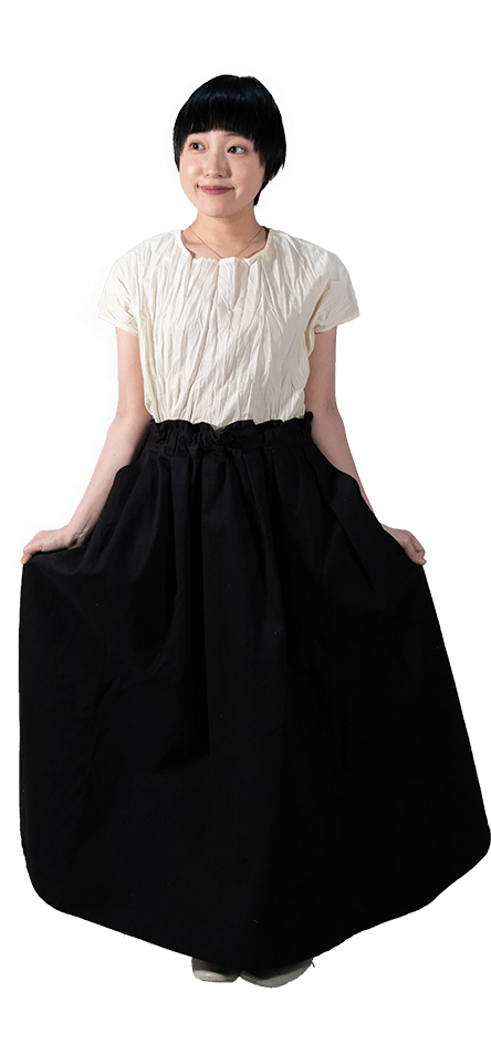 裾にいくにつれてふんわりと広がるシルエットが、女性らしく可憐な印象に。