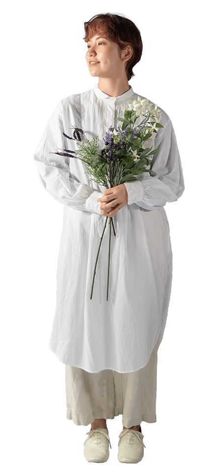 ふんわりとしたコットン素材に、繊細なピンタックのディテールがワンランクアップの装いに。