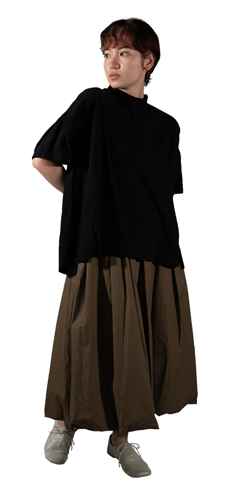 high neck switch cutsew ¥9,680(税込) work flare skirt ¥12,980(税込)code 02