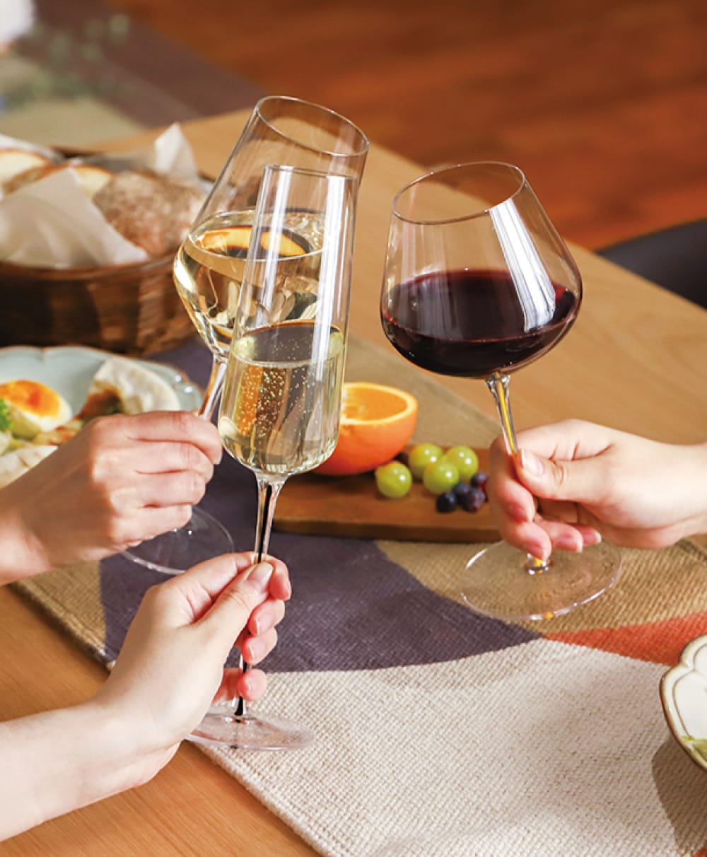 透明度が高く、薄く作られているため口当たりが良いワイングラス。