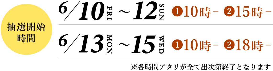 - ガラガラ抽選会の各時間、アタリが出次第終了となります。
