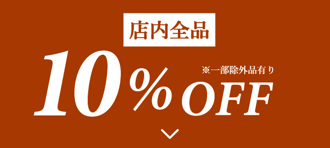 - 店内商品10%OFFの期間は、2022年4月25日(月)~2022年5月15日(日)までとなります。